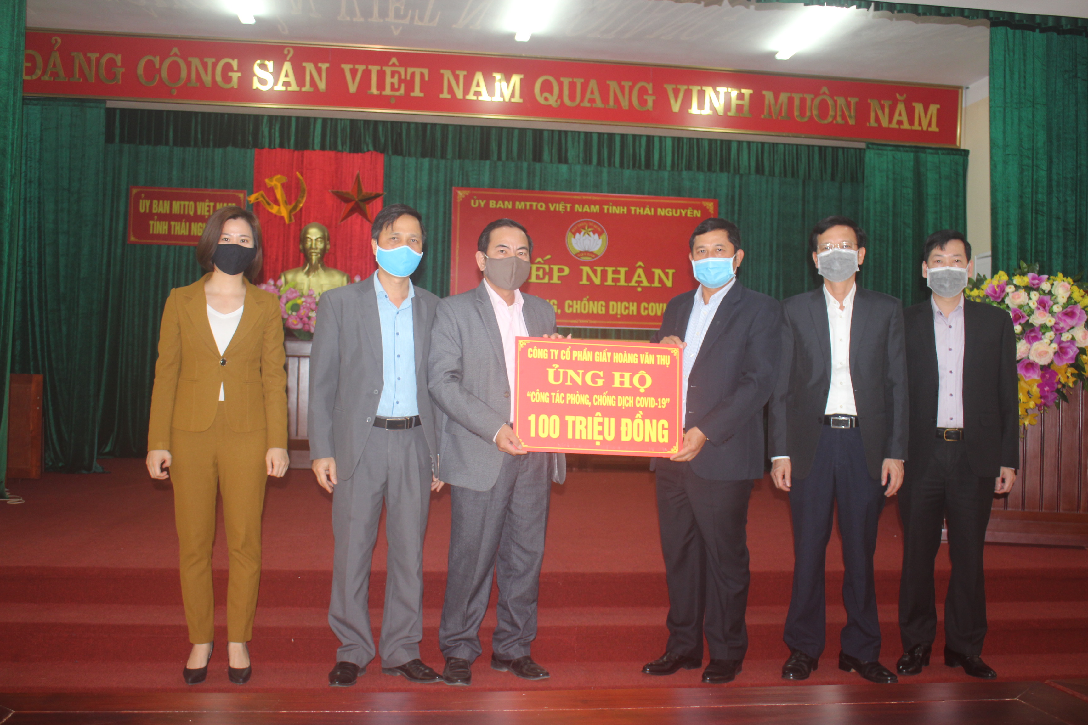 Cùng ngày, Công ty cổ phần giấy Hoàng Văn Thụ cũng ủng hộ 100 triệu đồng cho công tác phòng, chống dịch của tỉnh.