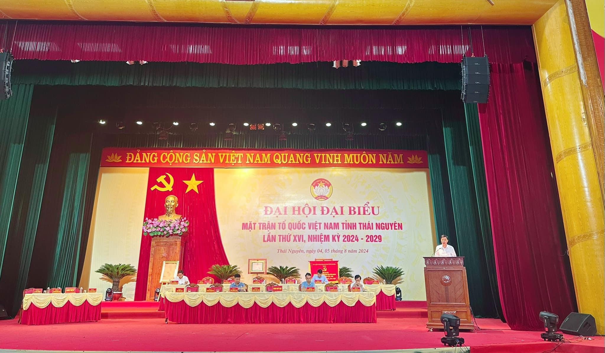 Đại hội đại biểu MTTQ Việt Nam tỉnh Thái Nguyên lần thứ XVI, nhiệm kỳ 2024-2029 được tổ chức trọng thể trong 2 ngày (4 và 5/8/2024) tại Trung tâm Văn hóa - Nghệ thuật tỉnh. Đây là đợt sinh hoạt chính trị sâu rộng của các tầng lớp nhân dân trong tỉnh về xây dựng khối đại đoàn kết toàn dân tộc. Đến nay, Ủy ban MTTQ tỉnh cùng các cơ quan, đơn vị phối hợp đã tập trung chuẩn bị tốt các điều kiện bảo đảm cho việc tổ chức Đại hội đại biểu MTTQ tỉnh thành công tốt đẹp.